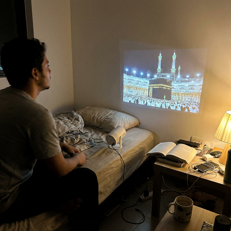 "I used to think my lack of khushu was a 'me' problem. But the second I started using NoorBeam, I realized: it was my environment. When I see Madinah on my wall, my brain knows: This is sacred."